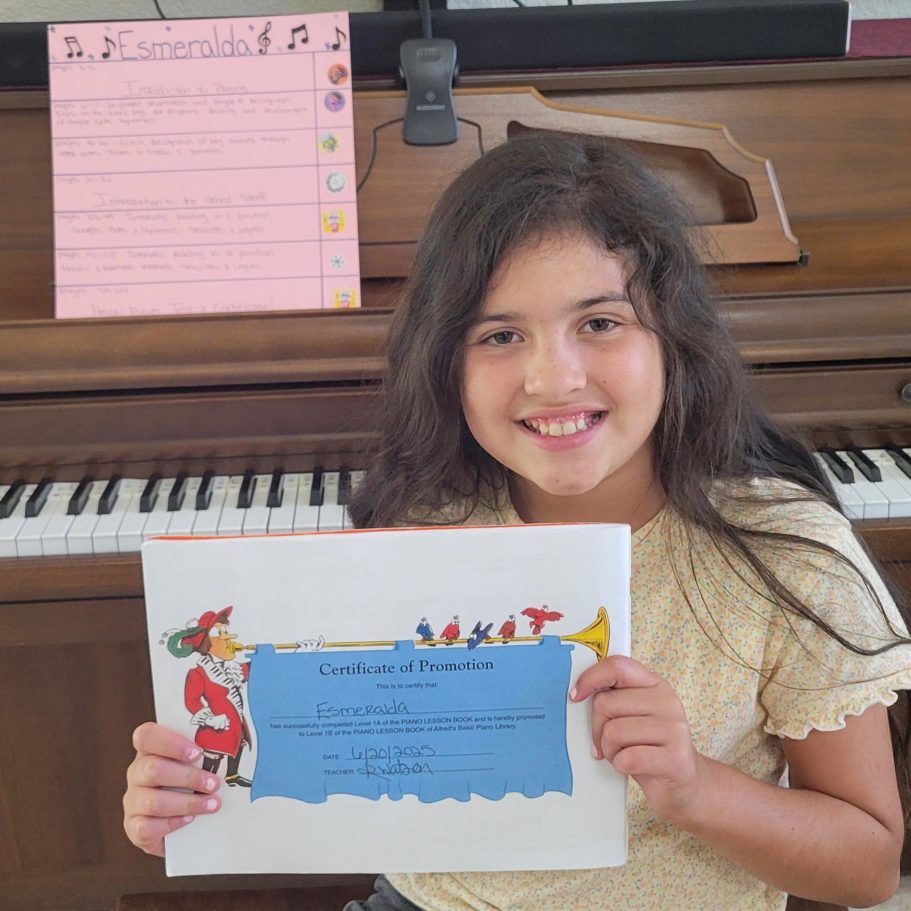By teaching each student to develop and cultivate their skills through practice, patience, and persistence, we hope to help students fall in love with music again or for the first time, through engaging and supportive lessons!