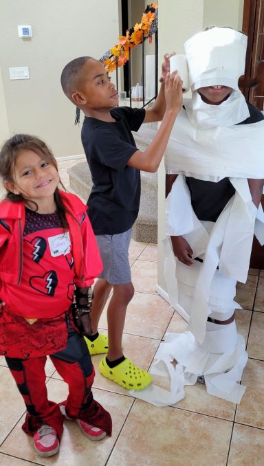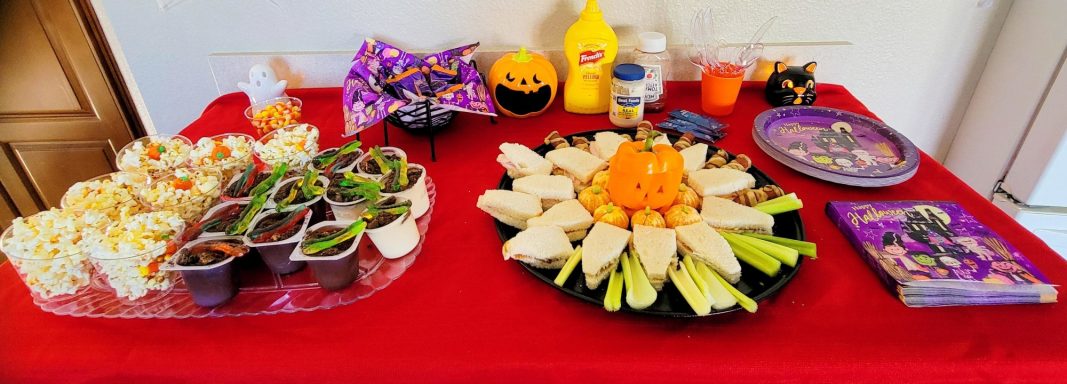 Mummy wrapping, Skeleton Relay, Scary Snacks!